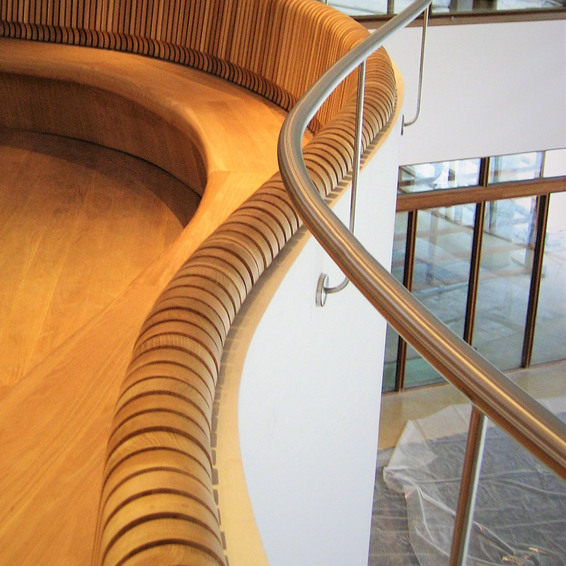 Este tipo de barandilla encaja en muchos rincones. Cualquier acabado del vidrio, junto al acero inoxidable, resulta una combinación perfecta. No solo se puede combinar con barandillas rectas, sino que puede adaptarse también a barandillas curvas....